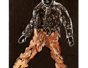…. In ihrem neuen Zyklus Wildtiere konzentriert sich Regina Moll auf Porträts von Tieren vor dunklem Hintergrund. Die lebendigen Gesichtszüge und markanten Augen werden mit weißer Zeichnung auf Schwarz betont, während Naturmaterialien wie Tannenzapfen, Blätter und Moos eine Verbindung zur Natur schaffen. Dieses Spiel von Zeichnung und Naturmaterial erzeugt eine intime und zugleich dramatische Atmosphäre, indem Licht und Schatten die Tiefe und das Wesen der Tiere einfangen.